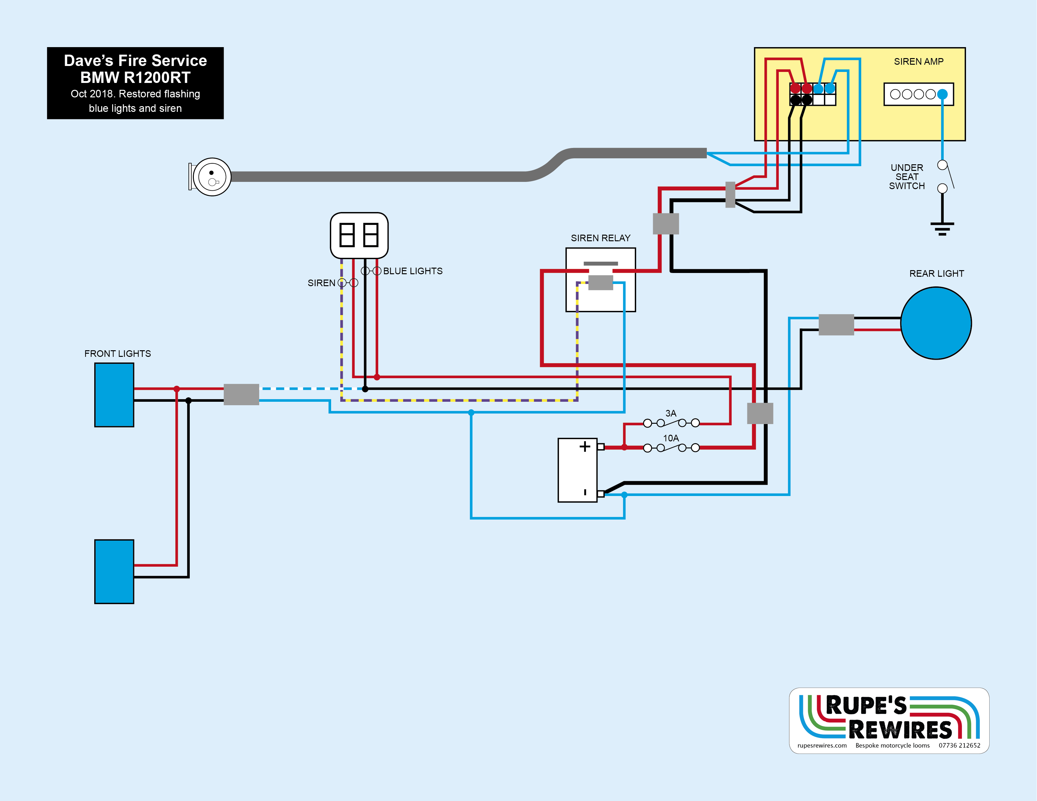 The only snag is that ex-police bikes have their blue lights and sirens disabled. Firexo found some new lights, but hoped the old siren amplifier could be made to work again. Unfortunately when I contacted the factory in China they said it was an obsolete model with no wiring available. So we bought another one and fitted that. It was very loud.