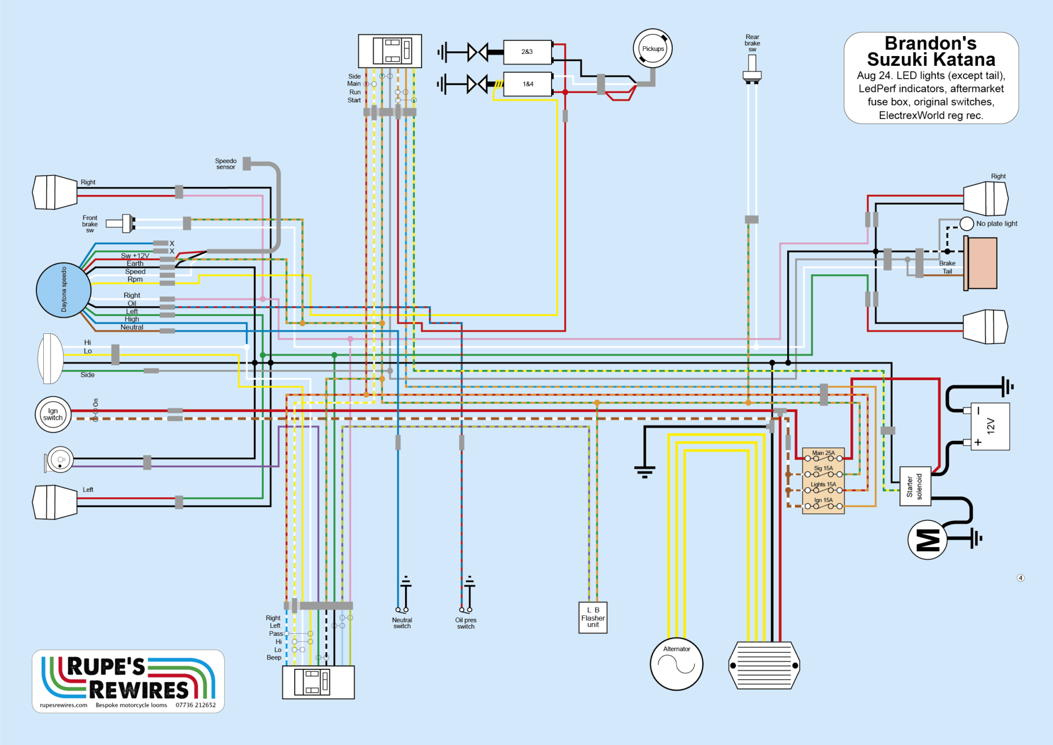 The bike came together nicely, and fired up with the usual gravelly GSX1100 tickover. Brandon’s biggest remaining headache is fitting the speedo sensor. Daytona supply a quick’n’dirty bracket which you secure to the fork leg with cable ties, but it fouls the caliper mounts on this bike. As a result he’ll modify the rear caliper mount to take the sensor. Not an easy or a quick job, but that’s specials for you. And it’ll be a neater solution when it’s done.