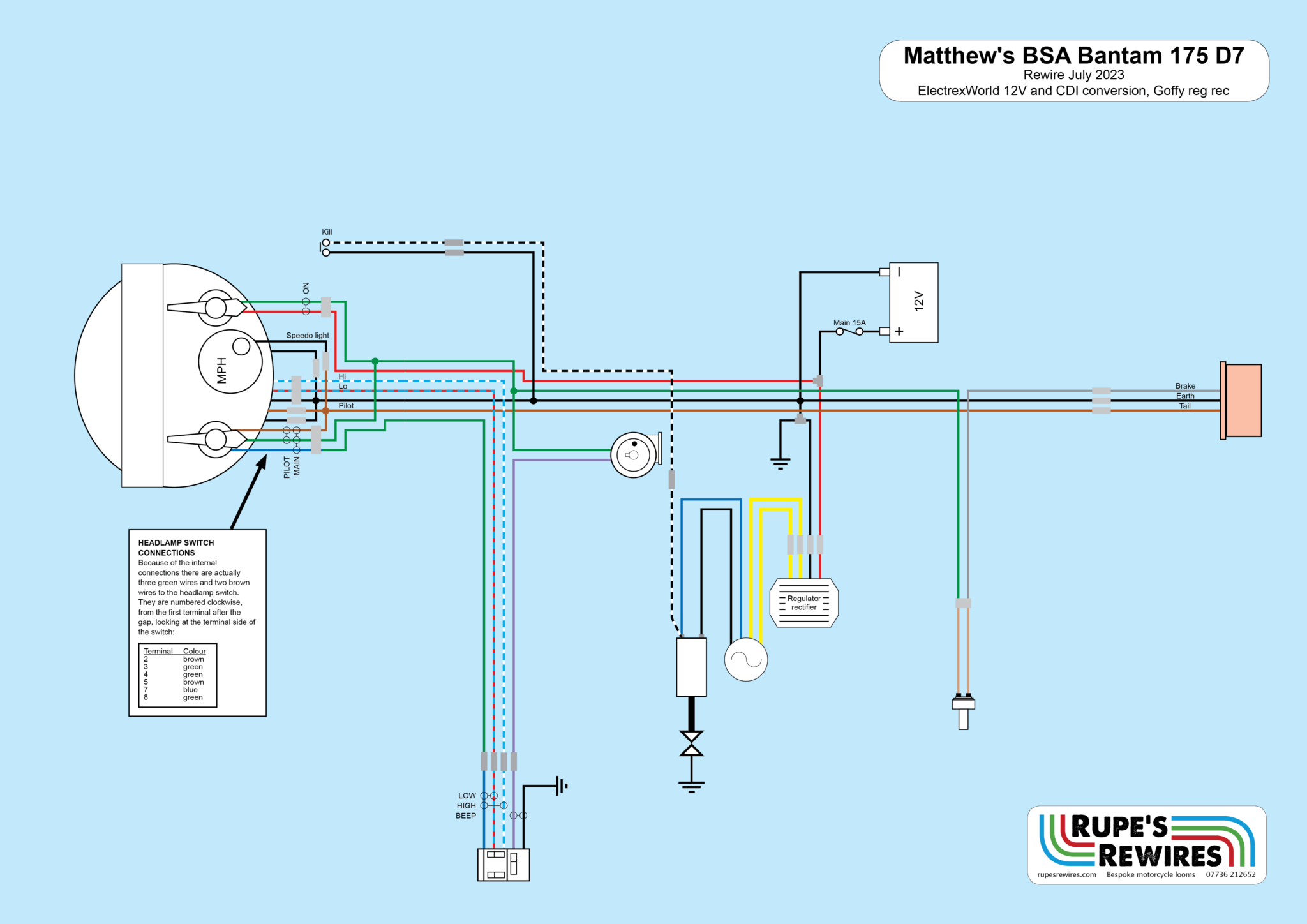 Like any sensible person, Martyn wanted his Bantam to take full advantage of a new loom. This meant electronic ignition, 12 volts and a bright LED headlight.