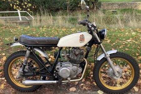 A kid’s dirt motorcycle turned into a roadgoing bike for grown-ups