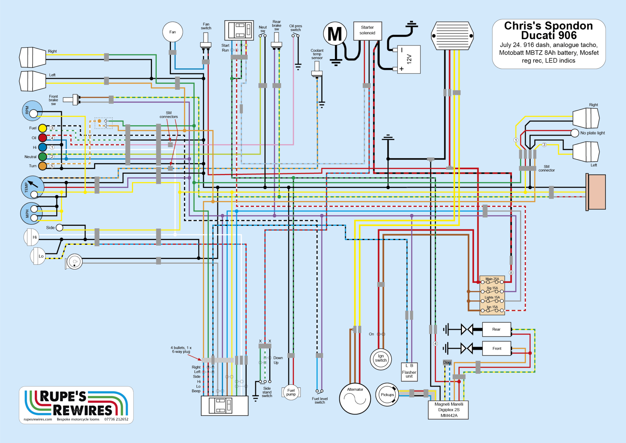 Designing and building an electrical system for this bike was one of those monster jobs that crop up every so often. Every scrap of the bike’s electrical equipment needed checking, repairing and repositioning so that nothing would intrude visually in the final appearance. Chris also wanted to make the nose cone and instruments removable without disturbing the main harness – a plan I agreed with.
