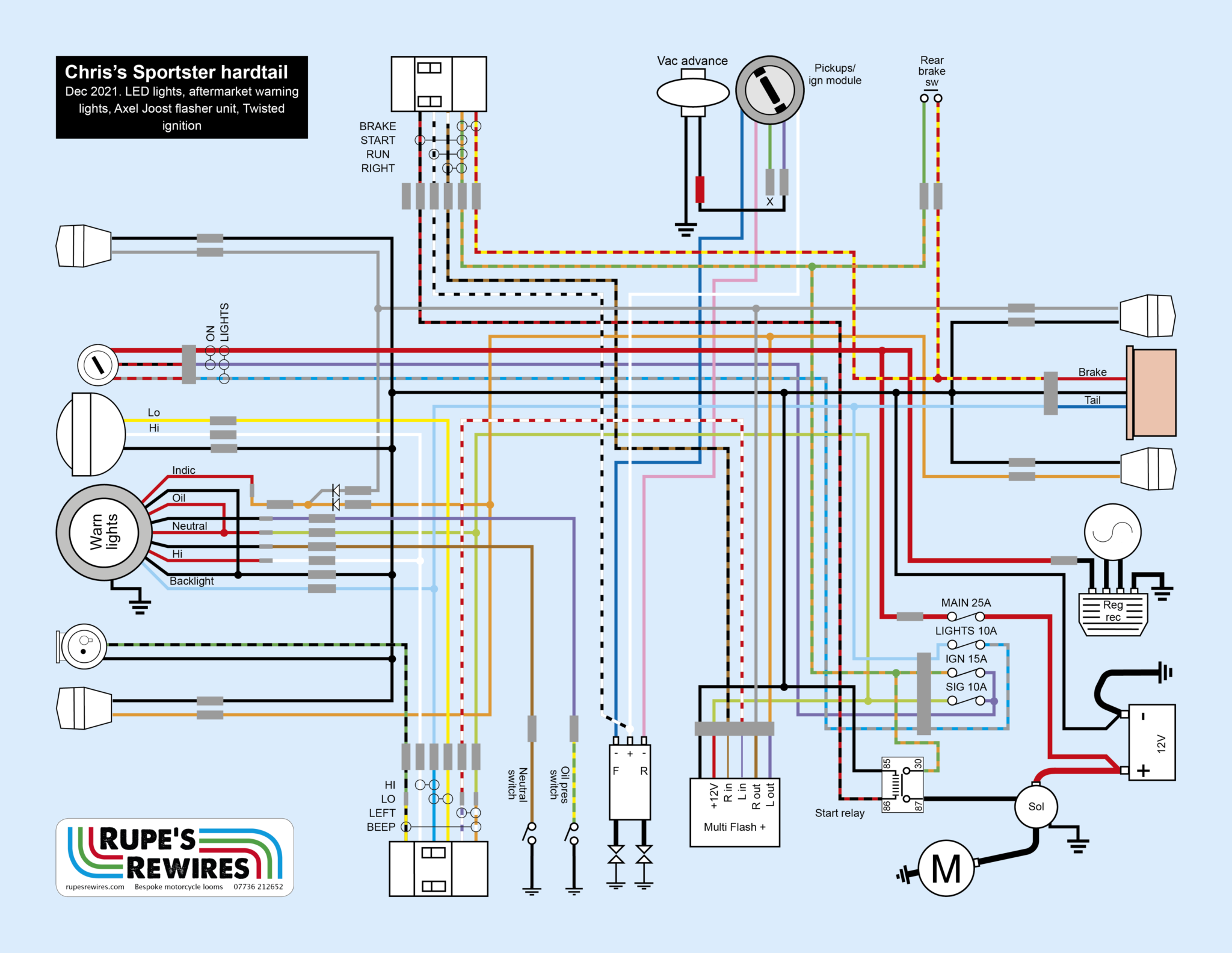 It’s always the way with Harley specials. Electrically there’s not much to confuse you, but getting it all to fit on a chopper frame is a different matter.