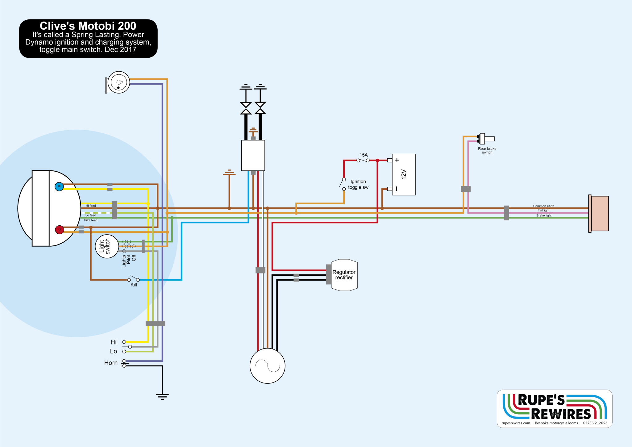 Anyway, owner Clive bought it to compete in one of those Italian long distance events for small bikes. It had been in a museum for years and the wiring was boffed. He bought a German-made CDI ignition/alternator kit made specifically for Motobi 200 two-strokes, and invited me to get on with it.