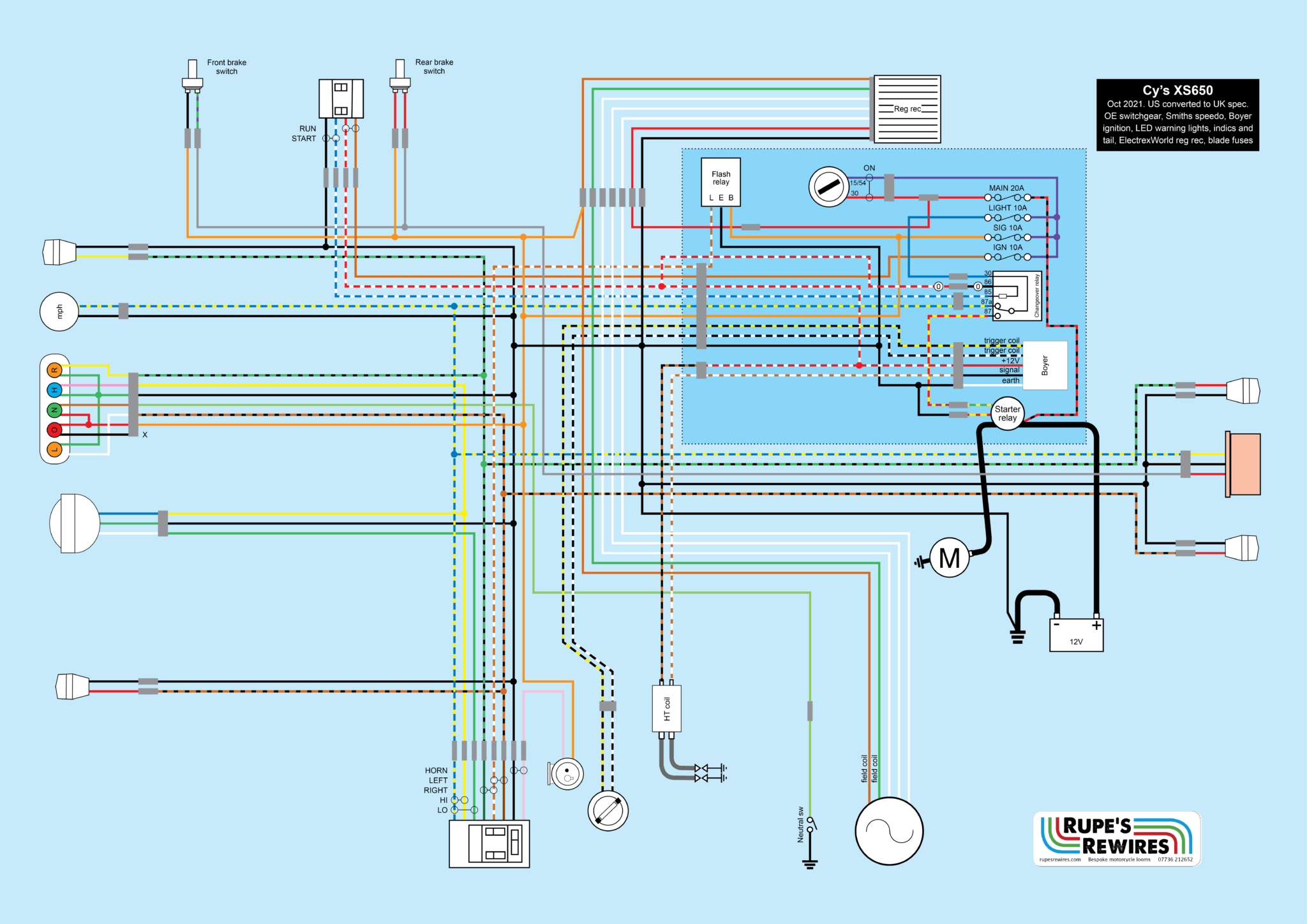You would think that rewiring a bike which only needs lights, indicators, ignition and a starter motor would be like falling off a log. Well in this case it was like falling off a branch. About 80ft above the forest floor.