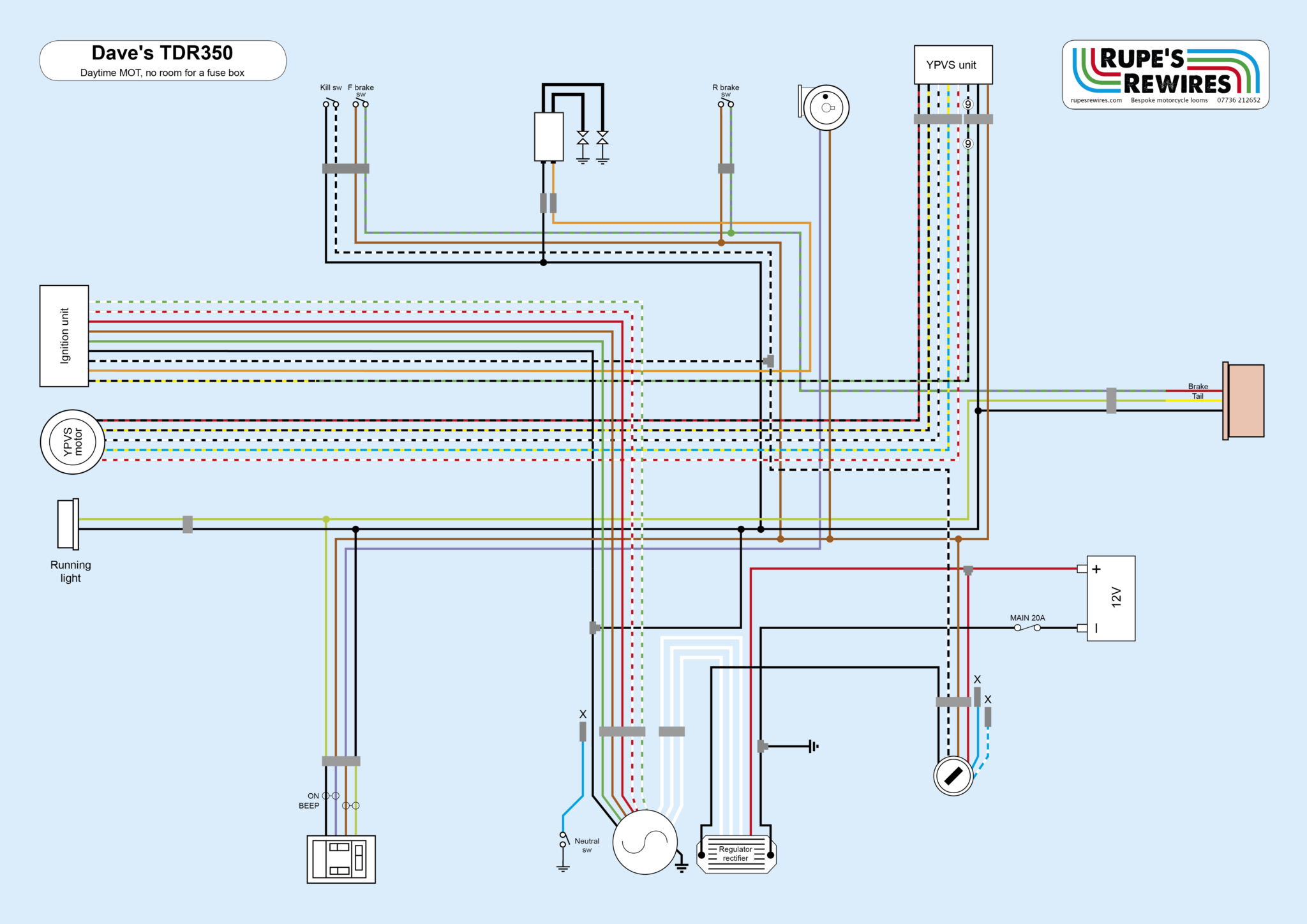 OK, it’s a TDR350 in the loosest terms. But with a Honda WR450 chassis and 17 inch wheels it does combine the searing power of a 350 Yam with the agility of a supermoto.