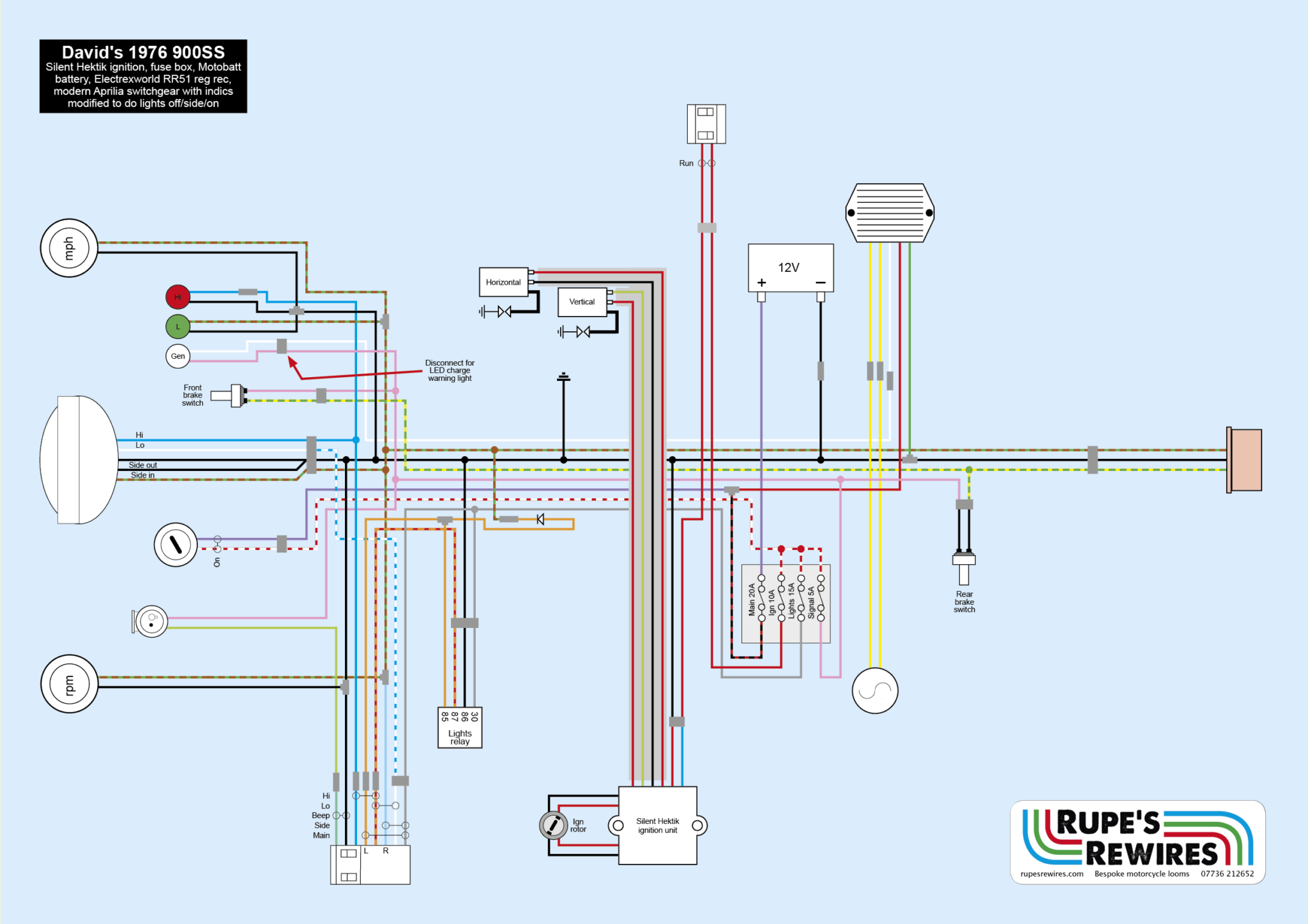 Once the bike was finished, David rode it over to the shop to show us. He reported a bit of a snag setting up the ignition: what looked like an intermittent spark. After much faff he realized the instructions had the wires for each cylinder the wrong way round. Once they were switched it started perfectly (which is saying something for these bikes).