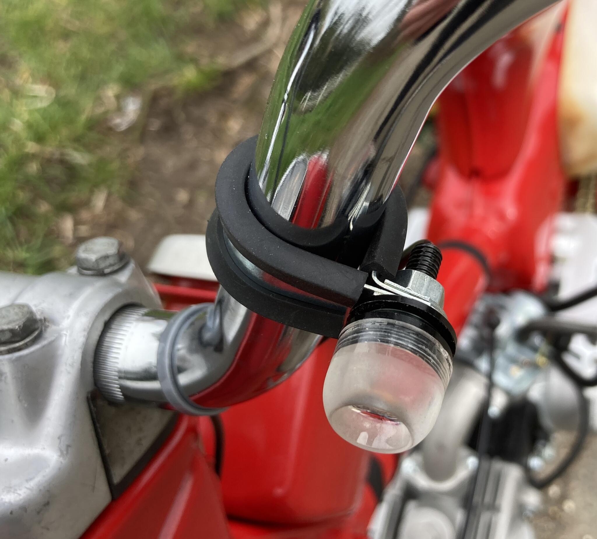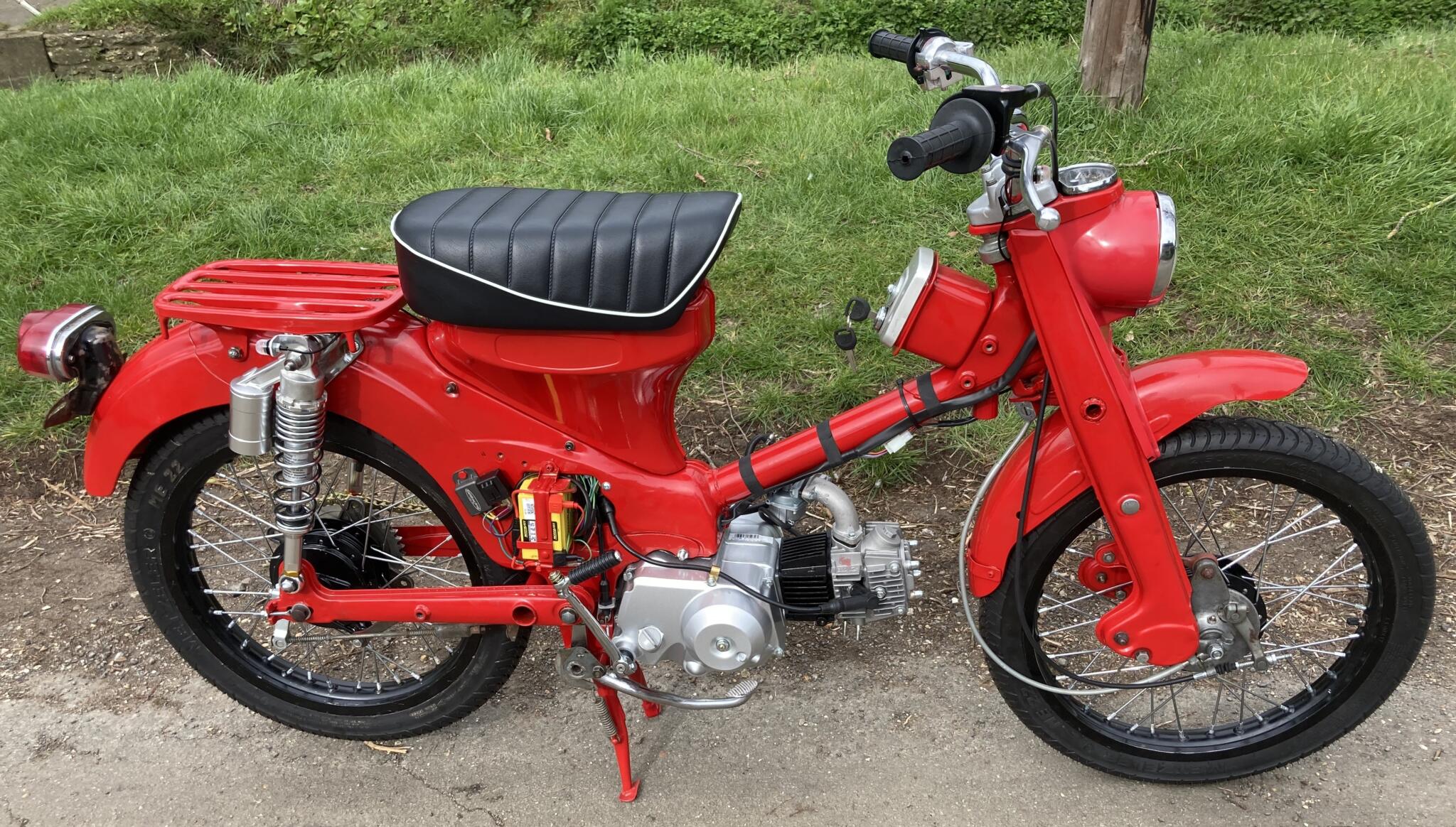 On top of that he’d bought a vintage-looking aftermarket handlebar switch, some LED indicators, and a 12V lithium battery. The other electricals were either fitted already, or in a box.