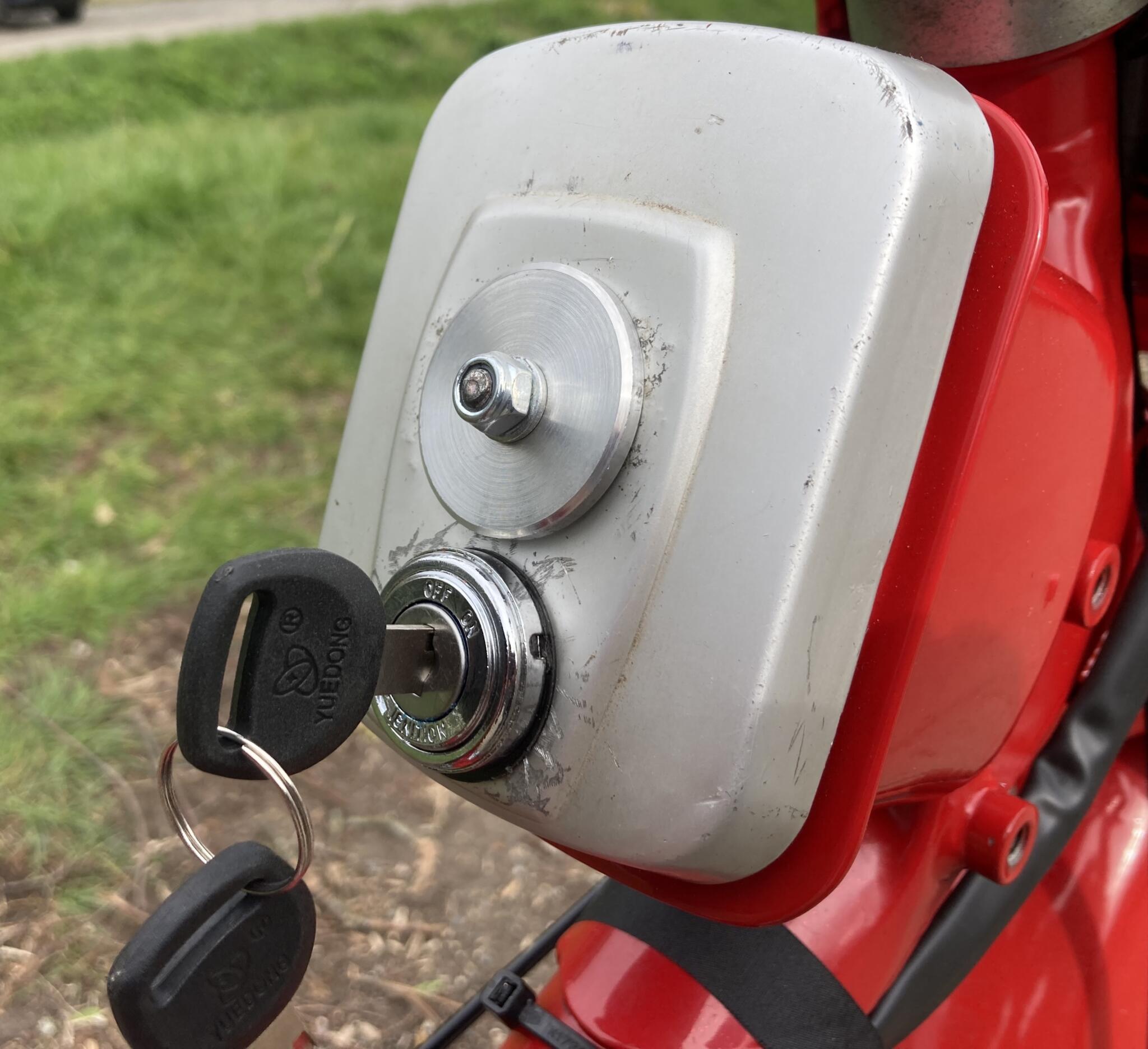 The Chinese Lifan engine is based on a Honda original. It comes with a carb and too-tight throttle cable
