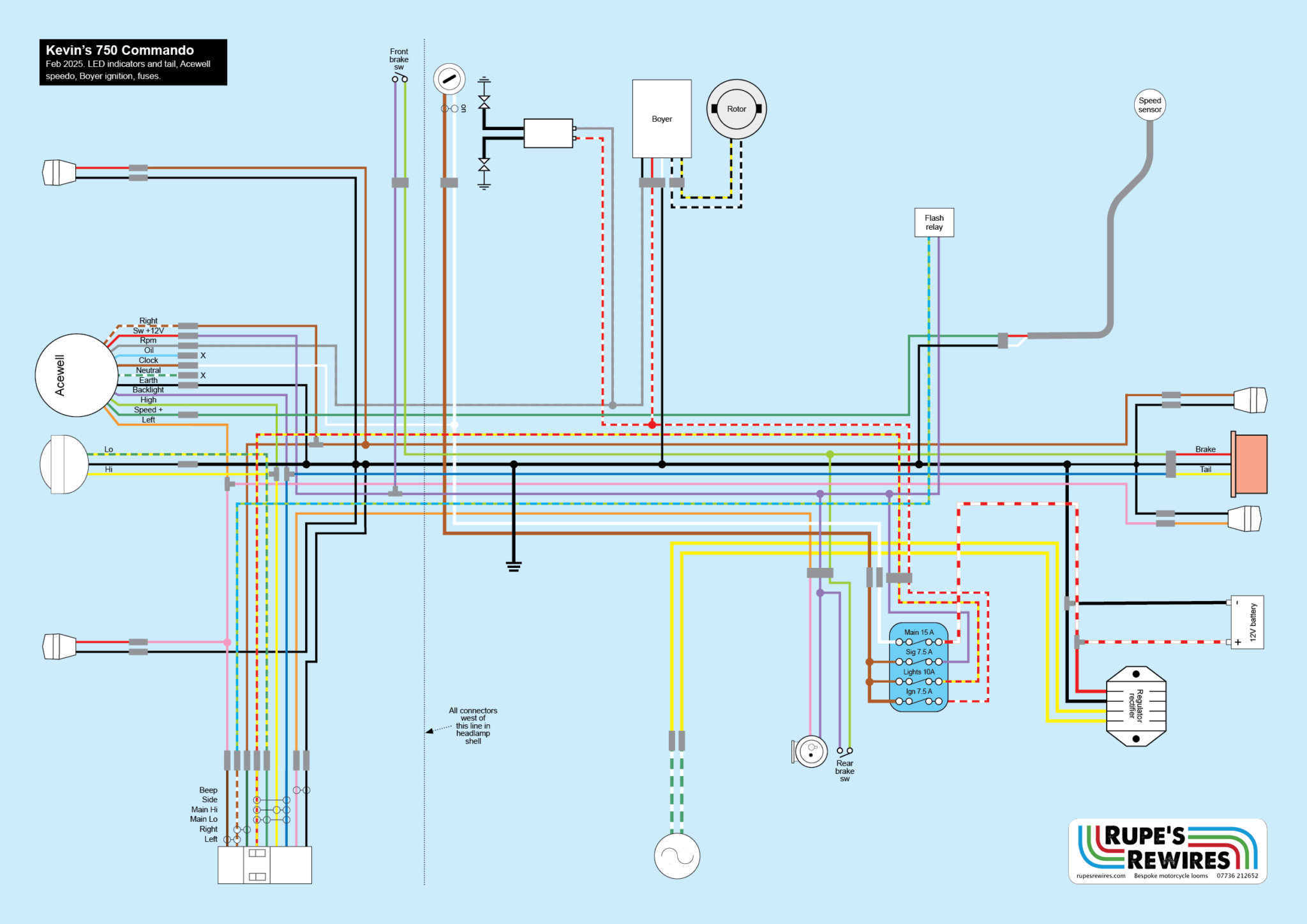 We were stuck with the Boyer ignition, sat on its thick ally bracket. There’s nowhere else for it to go. But I managed to save enough undamaged cable to get water-resistant Superseal connectors on. That should help. Everything else was moved to inside the headlight.