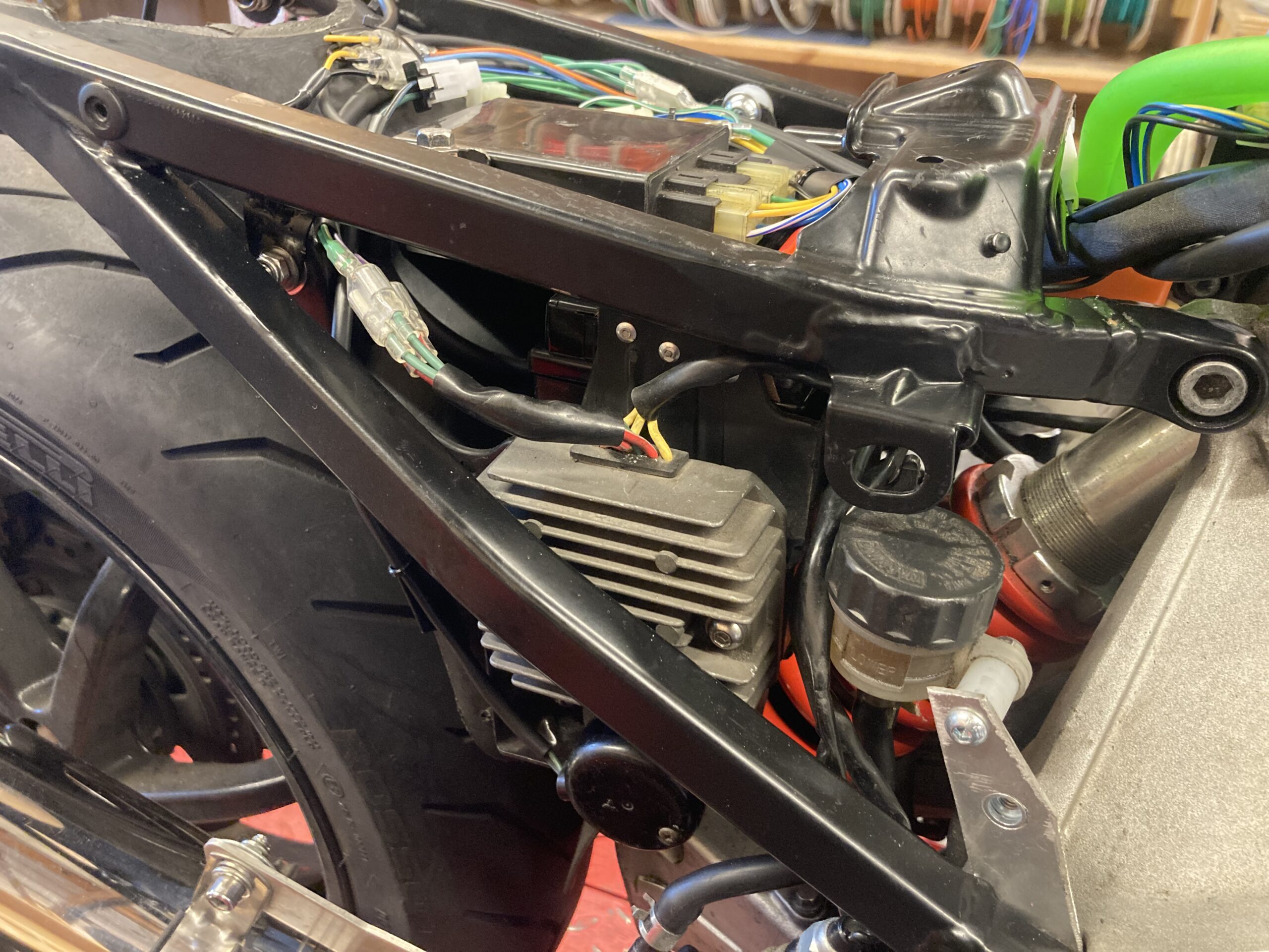 2) Renovate/test all the electrical components, and then mount them securely; (This is always a long process. On Les’s bike it took two-thirds of the time.)