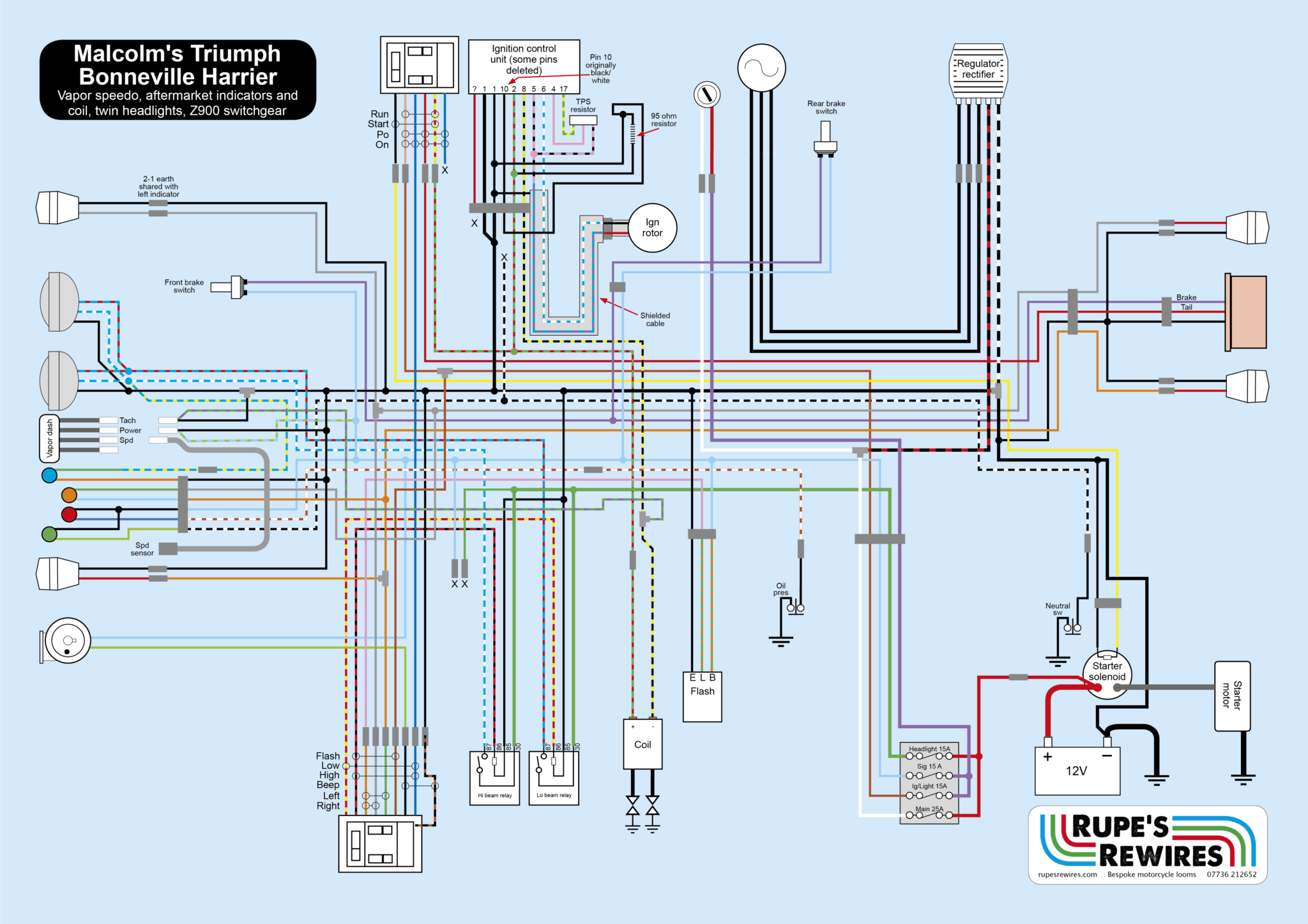 The original wiring was based on the standard 2001 Bonneville and it had been enthusiastically modified. Clearly it wasn’t up the the standard of the rest of the bike.