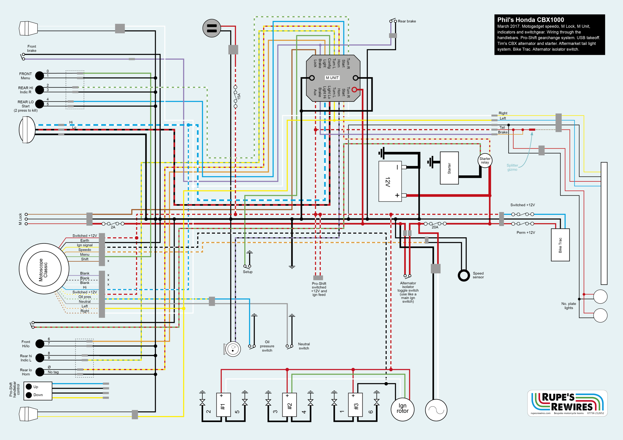 The electrical centrepiece of this bike is Motogadget’s masterpiece, the M Unit. With a thing called an M Button it can take a single wire from the switchgear and work the indicators, horn, lights, brake lights and ignition. We couldn’t fit the M Button in these Renthal bars unfortunately, so we had to run conventional cables to the M Unit. The unit also behaves like a fuse box and can vary indicator flash rates and such like. Does it simplify things? Not really. But the white-faced Motogadget speedo is lovely.