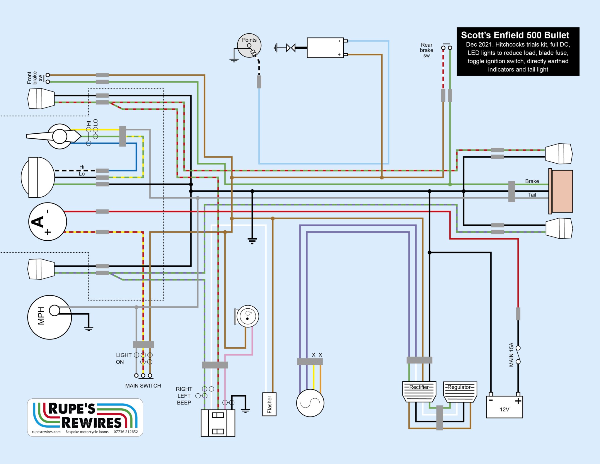 It has to be said that Enfield wiring harnesses – at least of early 2000s vintage – aren’t very good. There are lots of tight snags and poor quality materials. So building a new loom felt like a good idea anyway. There are plenty of improvements you can make to insulation, earthing and routing.