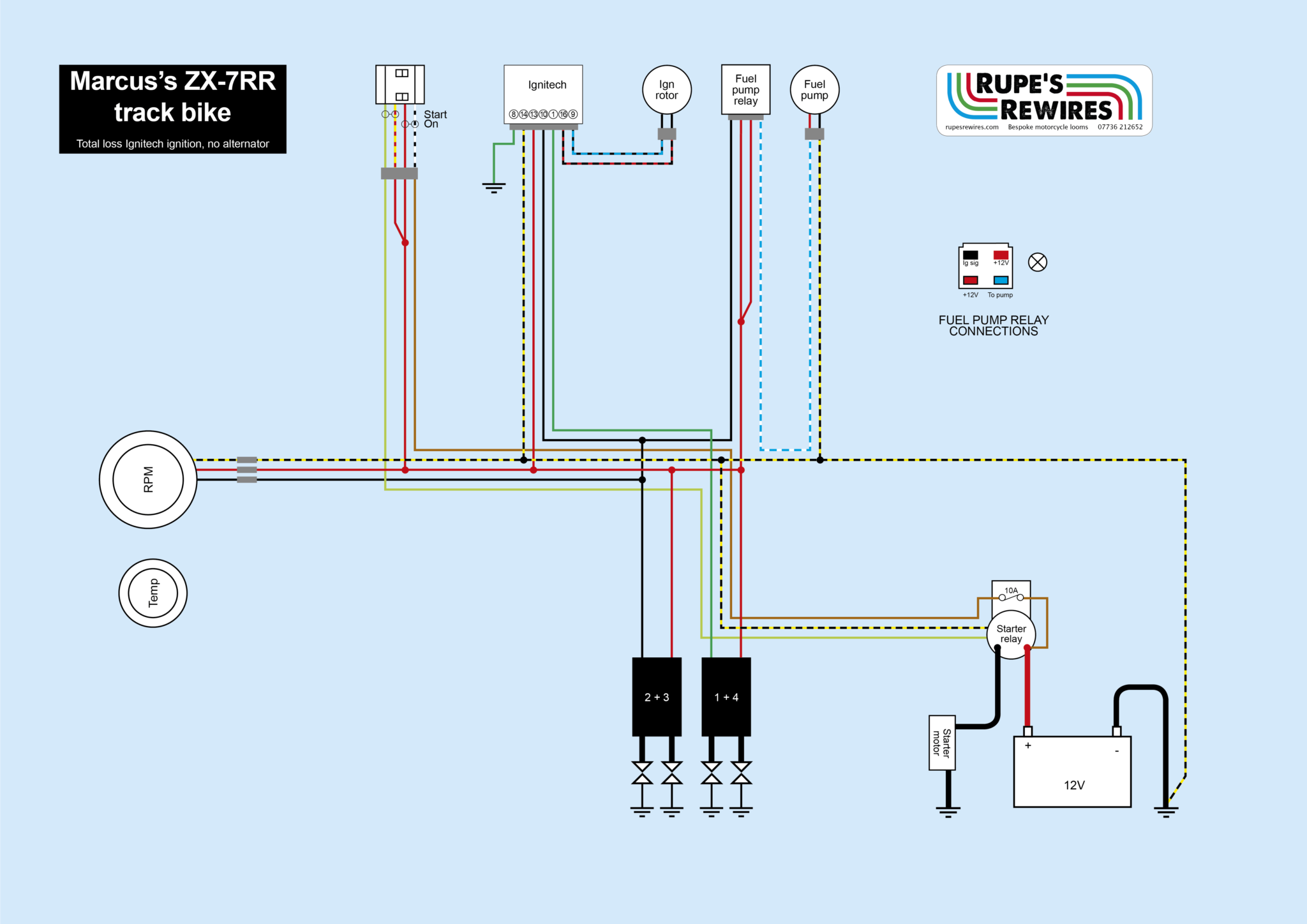 Marcus didn’t fancy buying another used igniter box, especially as his bike had been running one from some other Kawasaki, identity unknown. I suggested replacing it with an Ignitech box instead. Ignitech are a great company: good price, high quality product (programmable if you need it), proper technical back-up. I’ve fitted their stuff to all sorts of bikes, from Harleys to racers. One for the ZX-7R was €142.